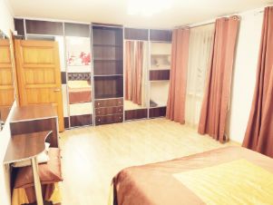 В квартире выполнен косметический ремонт. Гостиная и спальни обставлены необходимой мебелью, на кухне тоже есть всё для комфортного проживания. В наличии вся необходимая техника: холодильник, посудомоечная и стиральная машины, телевизор. В санузле установлена ванна, что обеспечит комфортное использование. Окна выходят на улицу, а в квартире есть лоджия, где можно отдохнуть после рабочего дня.