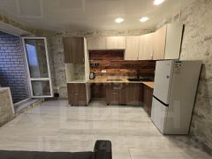 Полностью укомплектована техникой и мебелью: кухонный гарнитур, варочная панель, холодильник, стиральная машина, стол и стулья, диван.