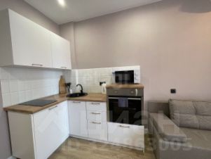 Кухня оборудована встроенными приборами (варочная поверхность, духовка, микроволновка).