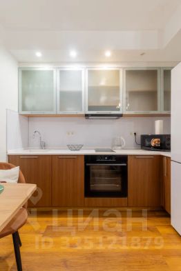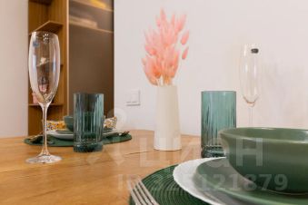 Полноценная кухня с варочной поверхностью, холодильником, микроволновой печью, электрочайником и всей необходимой посудой и кухонной утварью.