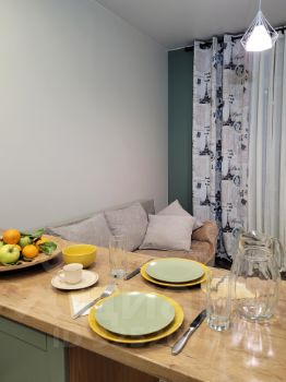 - Полностью оборудованная посудой и техникой кухня. Чай, кофе, сахар, соль