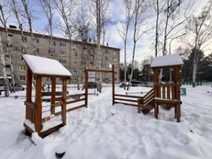 Расположена в спокойной хрущёвке, где живут пенсионеры .