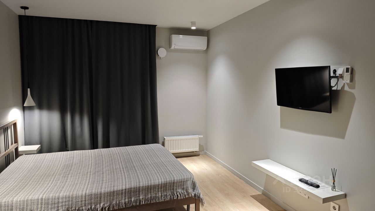 Сдается уютная студия с евроремонтом в современном доме 2021 года постройки. Квартира находится на 9 этаже 18-этажного монолитного здания. Общая площадь квартиры составляет 32,7 кв. м, а высота потолков — 2,73 метра. Из окон открывается вид на улицу, что наполняет помещение светом и воздухом.