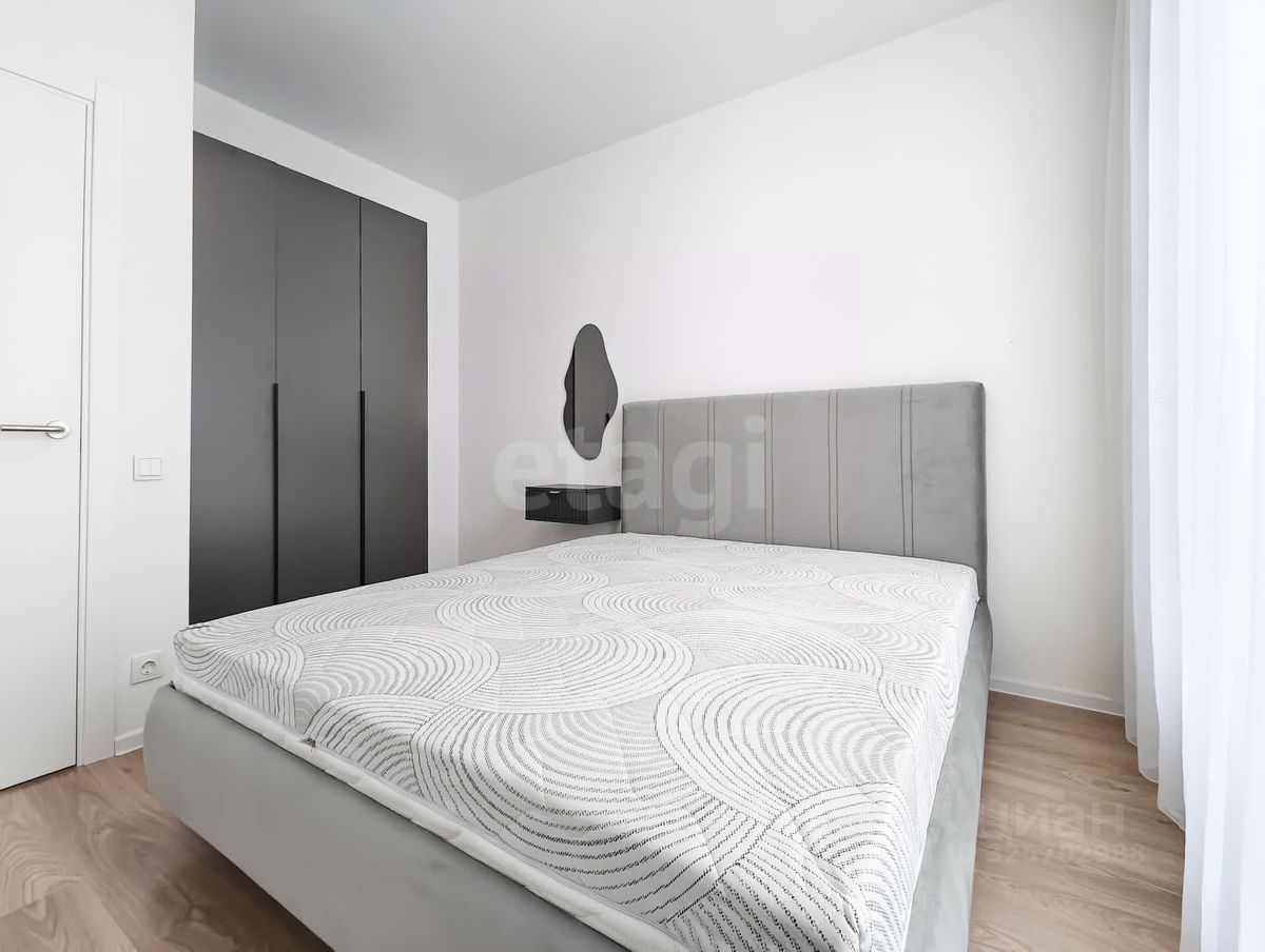 Спальня: двуспальная кровать с подъёмным механизмом, с мягкой обивкой и ортопедическим матрасом, шкаф-купе, трюмо подвесной и зеркало.
