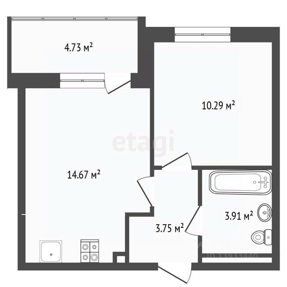 Большая кухня-гостиная 15м² и отдельная спальня 10м²