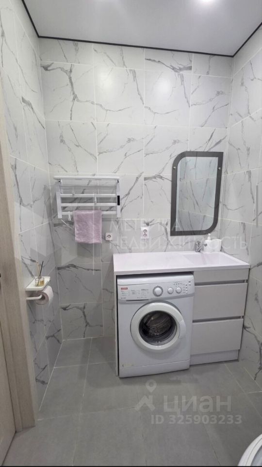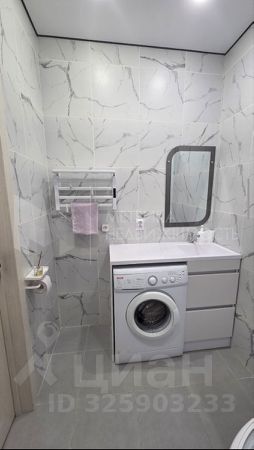 Санузел совмещенный, выполнен в современном стиле; качественная сантехника, раковина и столешница для стиральной машины, душевая кабина, электрический полотенце сушитель.