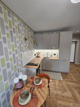 • Полностью укомплектована техникой и мебелью: кондиционер, кухонный гарнитур, варочная панель, телевизор, стиральная машина, холодильник, микроволновая печь, двуспальная кровать и диван