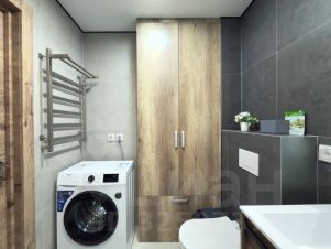 Современная бытовая техника: варочная панель, вытяжка, двухкамерный холодильник, электрочайник, СВЧ, фен, утюг, стиральная машина.