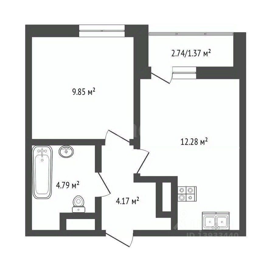 Этаж 13, площадь 33 м²