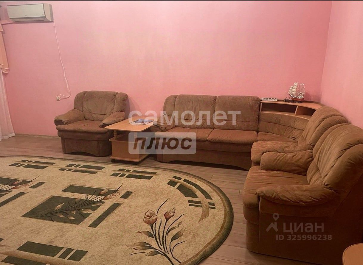 В гостиной комнате; угловой диван, телевизор, кресло, журнальный столик, компьютерный стол, кресло компьютерное. кондиционер.