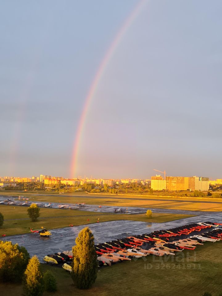 Из окон открывается красивый, живой вид на вертолётную площадку, особенно эффектный в вечернее время. Высокий этаж, много естественного света и ощущение простора. Установлены рулонные шторы для комфортного регулирования освещения и приватности.