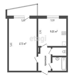 Этаж 7/9, площадь 34,1 м²