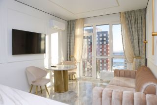 Представляем Вам шикарную двухкомнатная квартиру с панорамными окнами с прекрасным видом,особенно во время заката! В квартире уютная световая и текстильная отделка в нейтральной палитре, натуральные материалы. Кухня-гостиная с минималистичной кухней, оборудована всем необходимым: плита, вытяжка, бытовая техника, обеденная зона с видом.