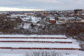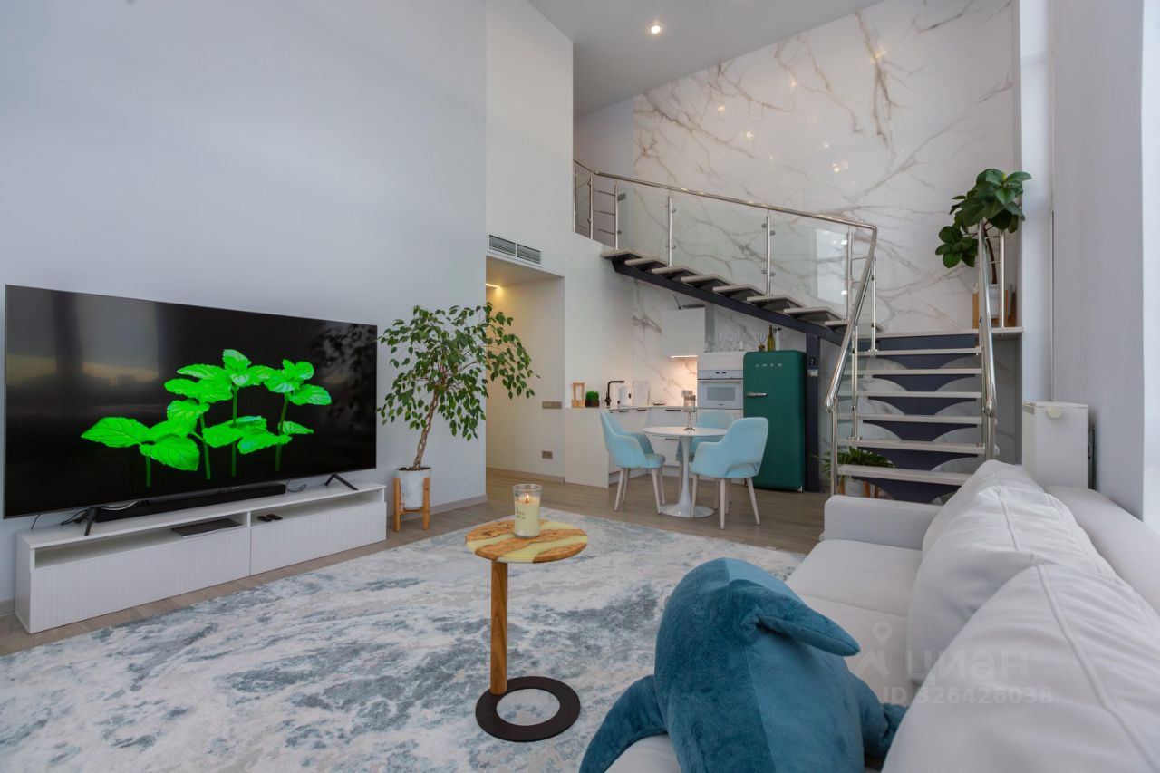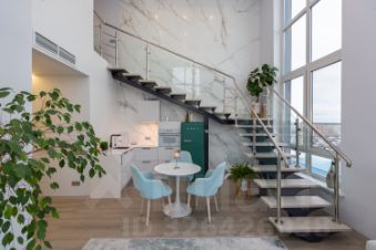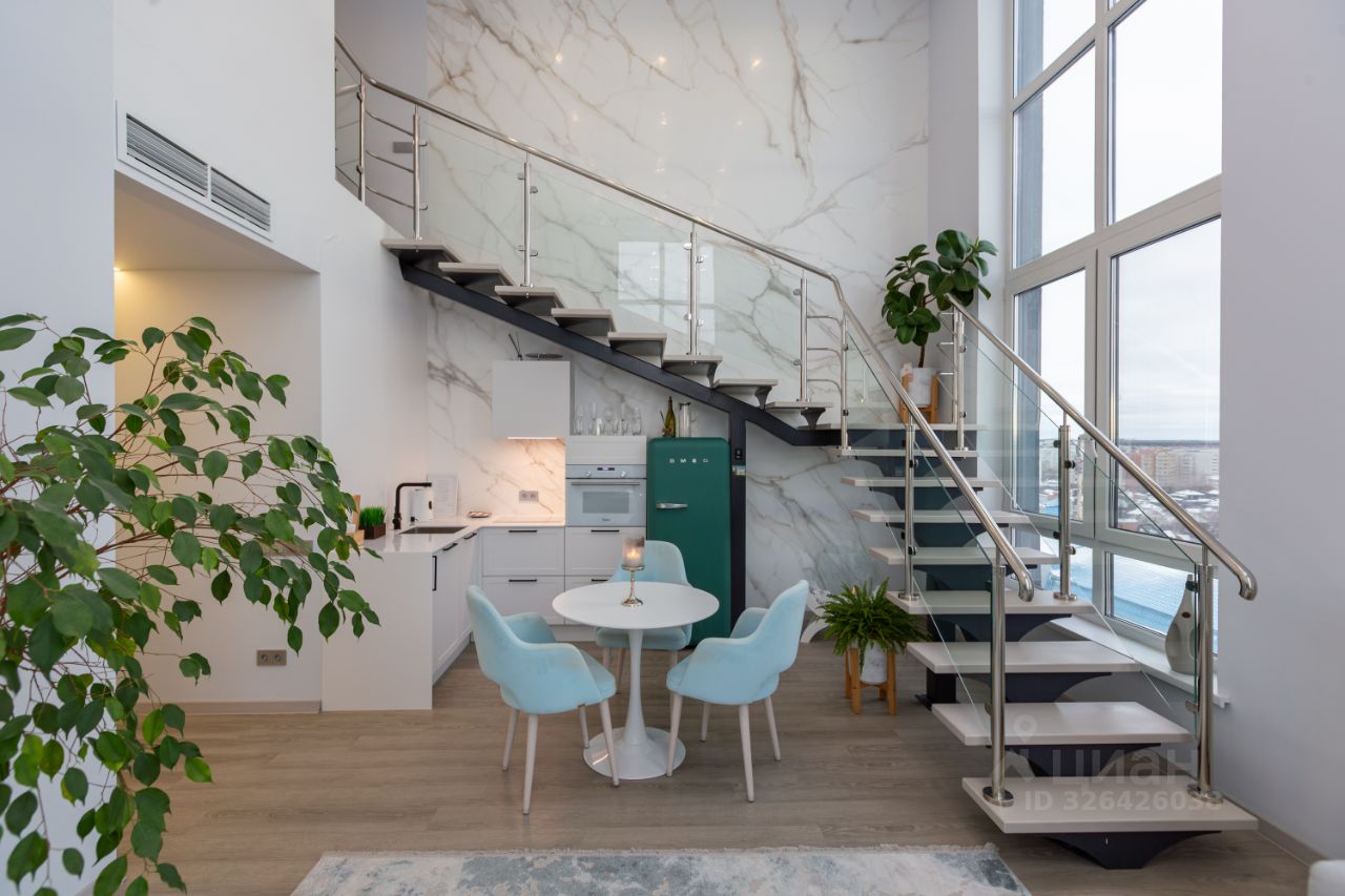 Высота потолков 6 м и панорамные окна с видом на мост Влюбленных.