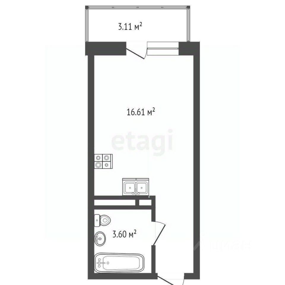 Этаж 19/19, площадь 23 м²