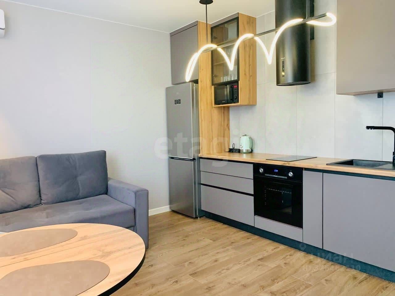 В квартире есть всё для комфортного проживания, много совершенно нового: кухонный гарнитур, варочная панель, холодильник, стиральная машина, диван, кровать, кондиционер, обеденный стол, стулья и всё, что есть на фото.