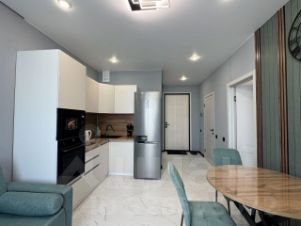 В квартире сделан современный евроремонт. Здесь есть вся необходимая мебель как на кухне, так и в комнате. Для вашего комфорта установлены холодильник, телевизор и стиральная машина. Санузел совмещенный, с ванной. Высота потолков — 2,7 м, что создает ощущение пространства.