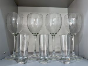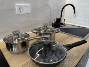 - кухонный гарнитур с бытовой техникой (духовой шкаф, варочная панель, микроволновая печь, вытяжка, холодильник). Посуда столовая и для приготовления.