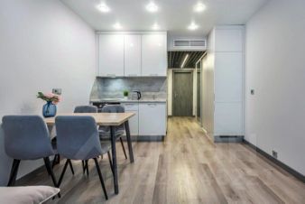 Доступная среда: работает лифт. А ещё в распоряжении гостей гладильные услуги. Сотрудники апартаментов поддержат беседу на русском.
