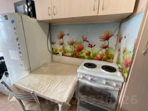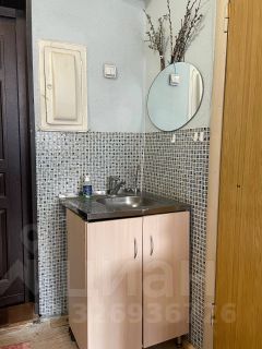 Кухня площадью оснащена необходимой мебелью и техникой. В комнате есть спальные места, а также телевизор. Санузел совмещённый, оформлен плиткой.