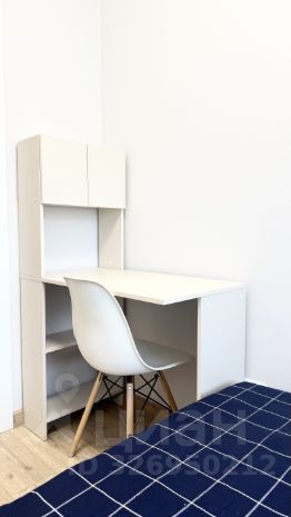 Жилая комната оборудована 2-х спальной кроватью, гардеробной, а также рабочим местом. В гостиной есть диван, который при необходимости раскладывается. В ванной комнате совмещенный санузел с современной сантехникой и стиральной машиной.