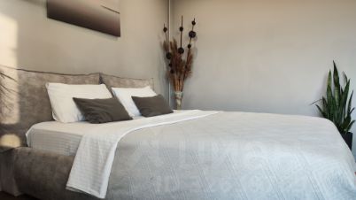 Просторная двухкомнатная квартира с большой кроватью с ортопедическим матрасом и односпальной кроватью.