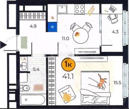 Сдаётся однокомнатная квартира в улучшенной черновой отделке, в Тюмени, ул. Эльвиры Фёдоровой, д.1