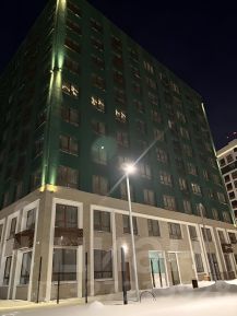 В доме два грузовых лифта. Во дворе — спортивная площадка и открытая парковка.