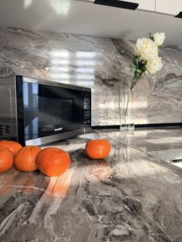 - укомплектованная кухня со всем необходимым: холодильник, варочная панель, чайник, новая посуда, микроволновая печь и мелочи на кухне