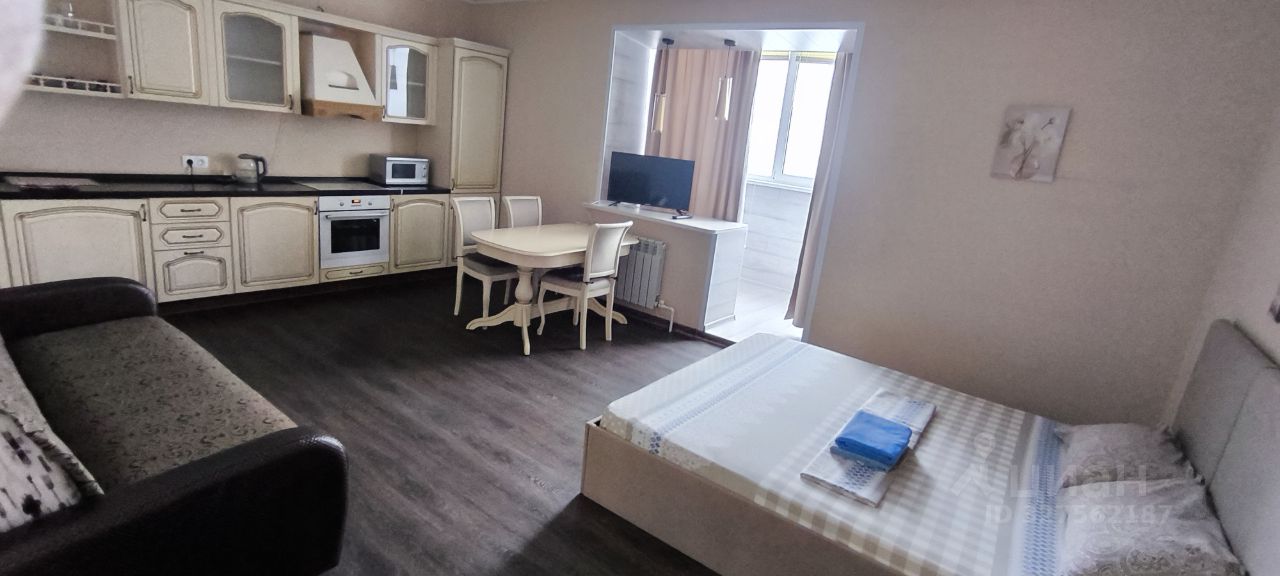 Комната разделена на 2 зоны - кухонная зона и спальня. Здесь просторно и комфортно. Теплый балкон с завораживающим видом с 18 этажа.