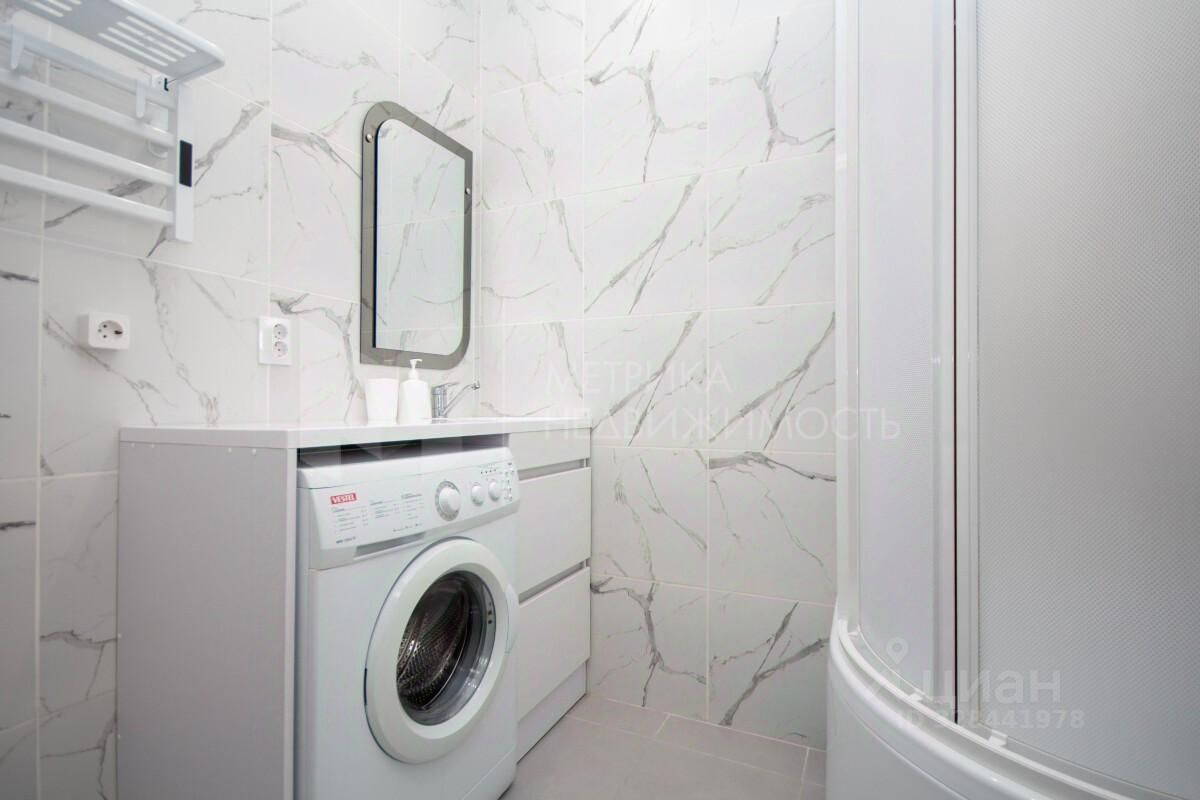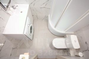 Санузел совмещенный, выполнен в современном стиле; качественная сантехника, раковина и столешница для стиральной машины, душевая кабина, электрический полотенце сушитель.