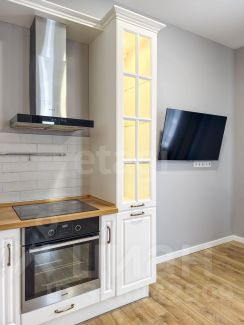 Полностью укомплектована техникой и мебелью: варочная панель, духовой шкаф, посудомоечная машина, телевизор, вытяжка, стиральная машина, холодильник, кондиционер, шкаф, диван и кровать.