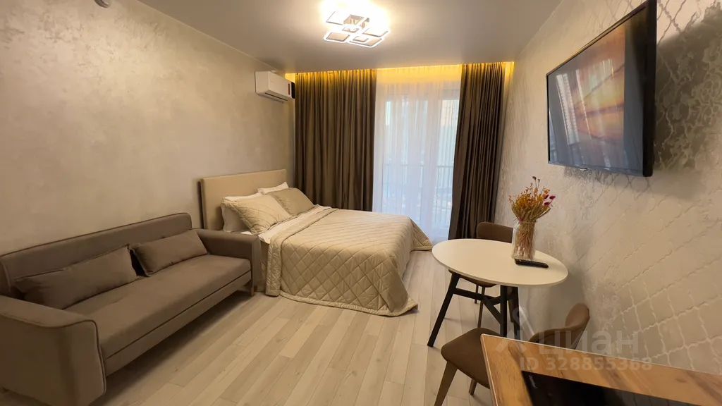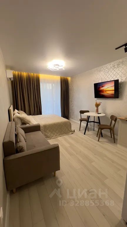 Представьте: утро начинается с кофе на уютном балконе, а за окном — прекрасная панорама Тюмени. Вас ждет новая светлая студия 26 м², где каждая деталь продумана для вашего удовольствия и отдыха.
