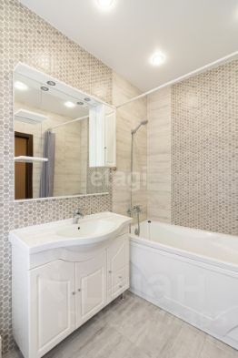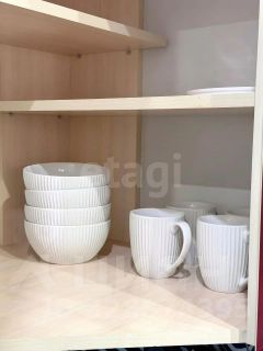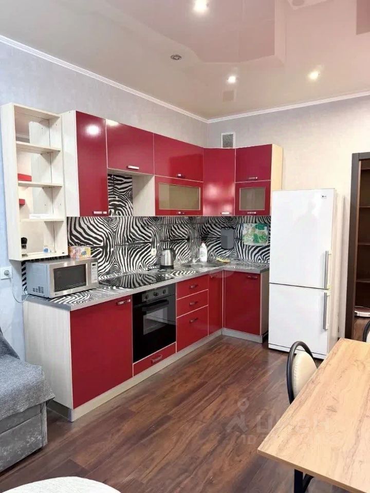В квартире имеется все необходимое для проживания: кухонный гарнитур, кухонный стол и стулья, варочная панель, духовой шкаф, холодильник, стиральная машина, диван, шкаф, шкаф-купе.