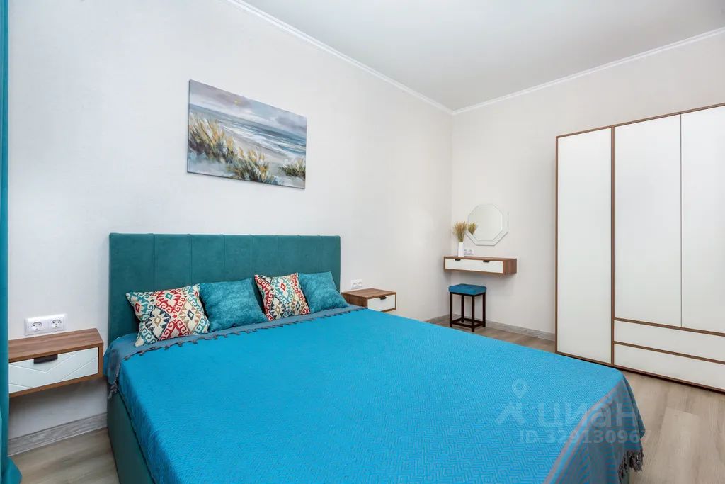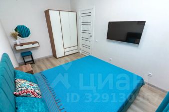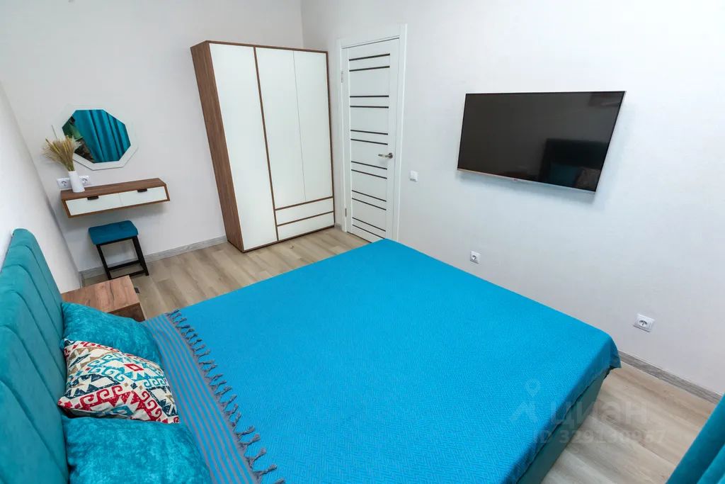Просторная комната и кухня. В комнате большая двуспальная кровать