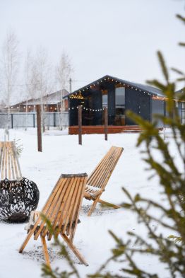 Костровая зона с очагом и шезлонгами для вечерних посиделок.
