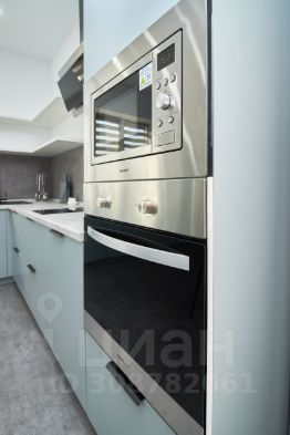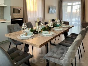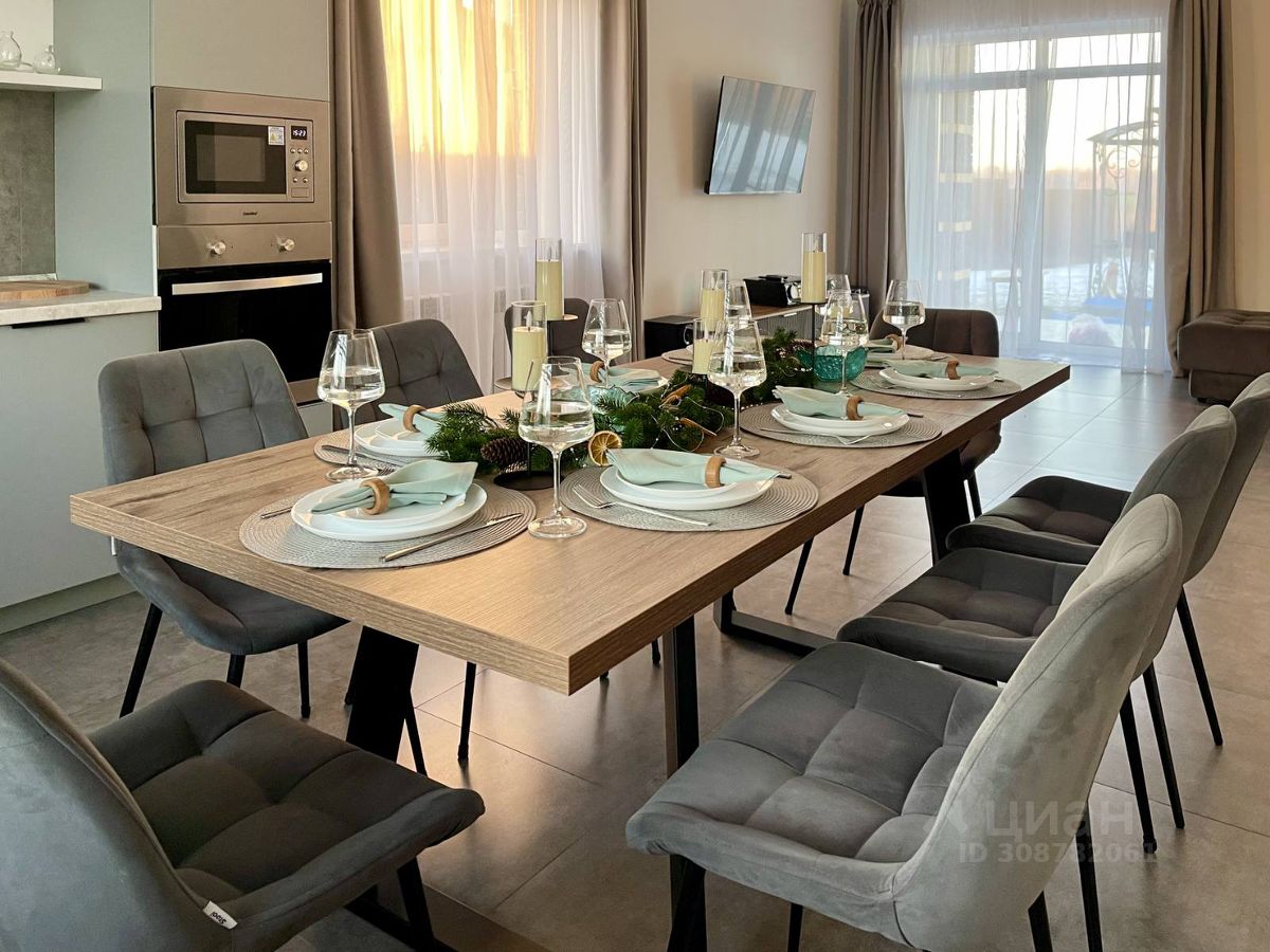 Большая кухня-гостиная (37 м²) укомплектована всем необходимым, в том числе фильтром для воды, имеет панорамные окна и выход на террасу.