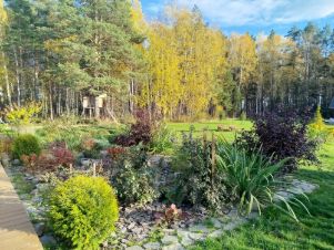 На территории прекрасный ландшафтный сад с ГОРТЕНЗИЯМИ и множеством других растений.