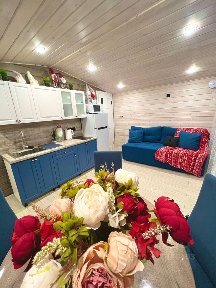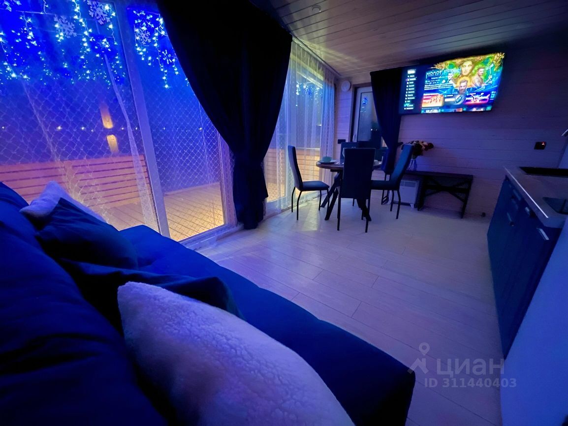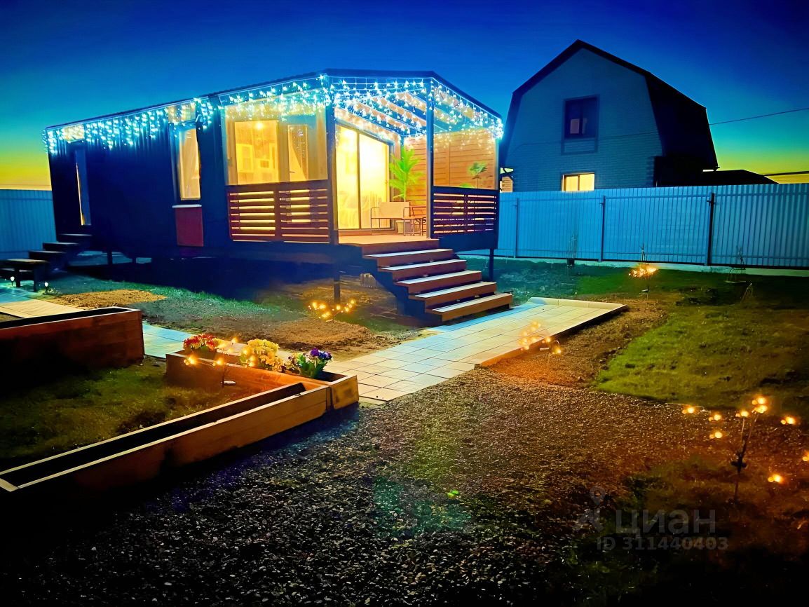 В доме две комнаты, спальная с двуспальной кроватью(комнате за дверью) и гостиная, совмещенная с мини кухней с раскладным диваном, на два спальных места, так же санузел с туалетом и душем. Каждая комната оборудована панорамными окнами, через которые открывается прекрасный вид на закат и восход солнца.