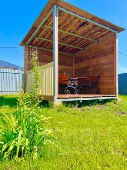 Отдых на свежем воздухе: во дворе вас ждет мангал для барбекю, удобный столик и качели, где можно провести вечера в кругу близких.
