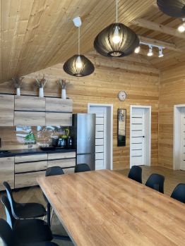 Просторная кухня -гостиная со всем необходимым, стол на 12-14 посадочных мест, раскладной диван.