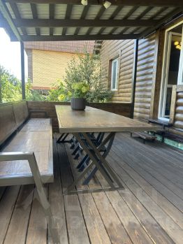 Терраса с выходом из кухни, стол более 3х метров длинной.