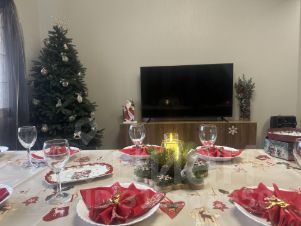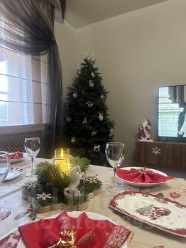 •Гостиная 28 м² — диван, 2 кресла-кровати, кондиционер, большой 3-метровый стол на 16 человек