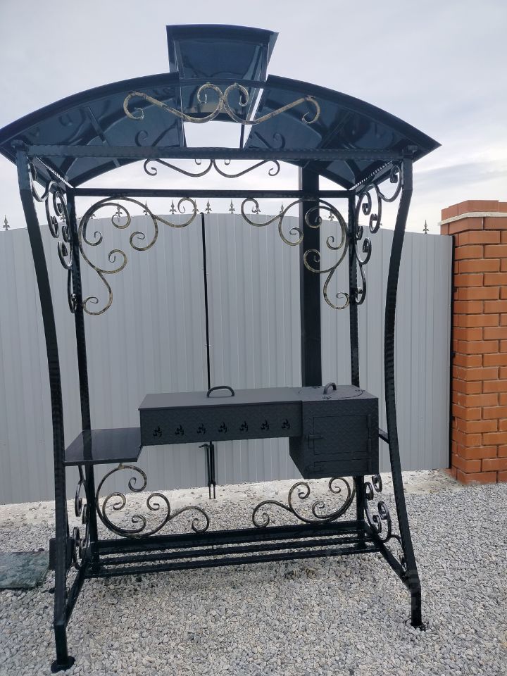 Во дворе имеется мангал,качели,столик,лавочки