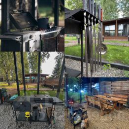 (Кастрюли , сковородки , блинная сковородка , поднос для шашлыков , шампура , набор металлических контейнеров с пластиковыми крышками , открывашки , овощечистка, разделочные доски и многое другое )