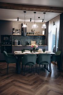 Большой красивый стол, вмещает до 10 чел (есть дополнительные стулья)