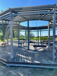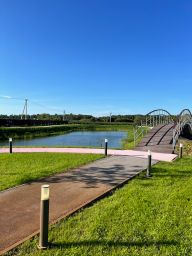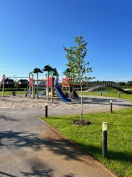 На территории КП богатая инфраструктура: имеются две детских площадки, футбольное поле, прогулочная аллея, беседка с видом на озеро.