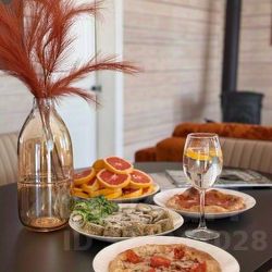 -просторная кухня, оборудованная всей необходимой техникой (варочная панель, холодильник, СВЧ, чайник, кофе машина, посудомойка) различная посуда, обеденная зона