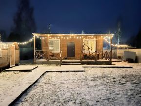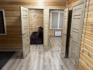 В доме 3 комнаты, 6 спальных мест + дополнительно двухместный матрац. Везде тёплый пол + радиаторы. Есть большой стол-книжка. Из техники - холодильник, плита, микроволновка, телевизор, мощная колонка с блютуз и разными DJ-эфектами. Телевидение, вай-фай, караоке, баня на дровах с подогеревом пола (без ограничения), мангальная зона с решетками и шампурами. Большая терраса.
