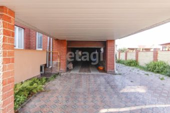 К дому пристроен тёплый гараж на два автомобиля, есть навес перед гаражом, можно припарковать третью машину.
